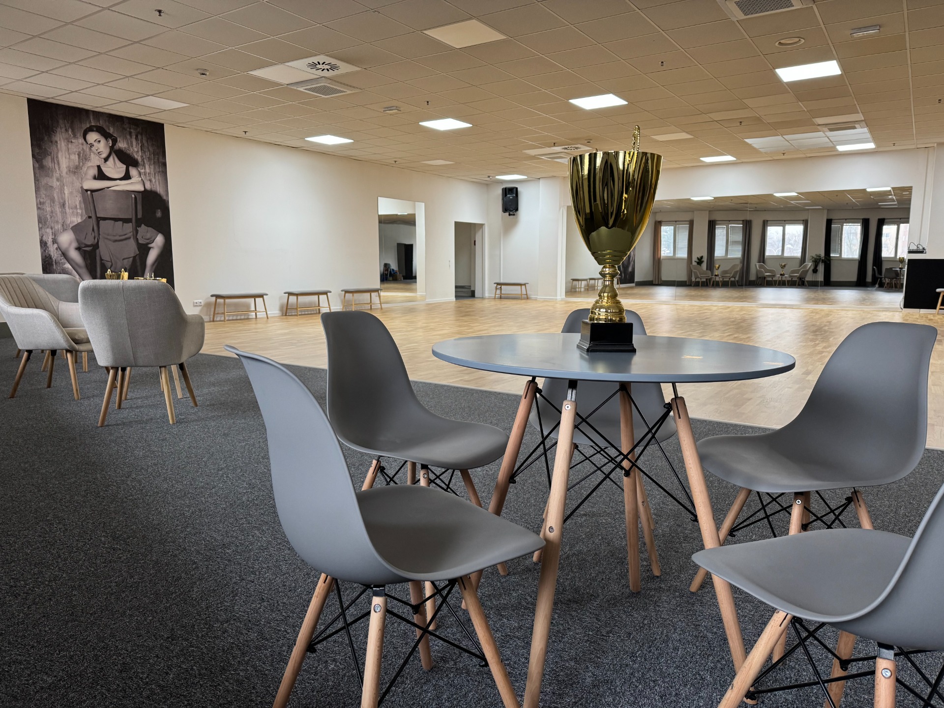 Malý průchozí taneční sál. Pro více informací klikněte na titulek článku.